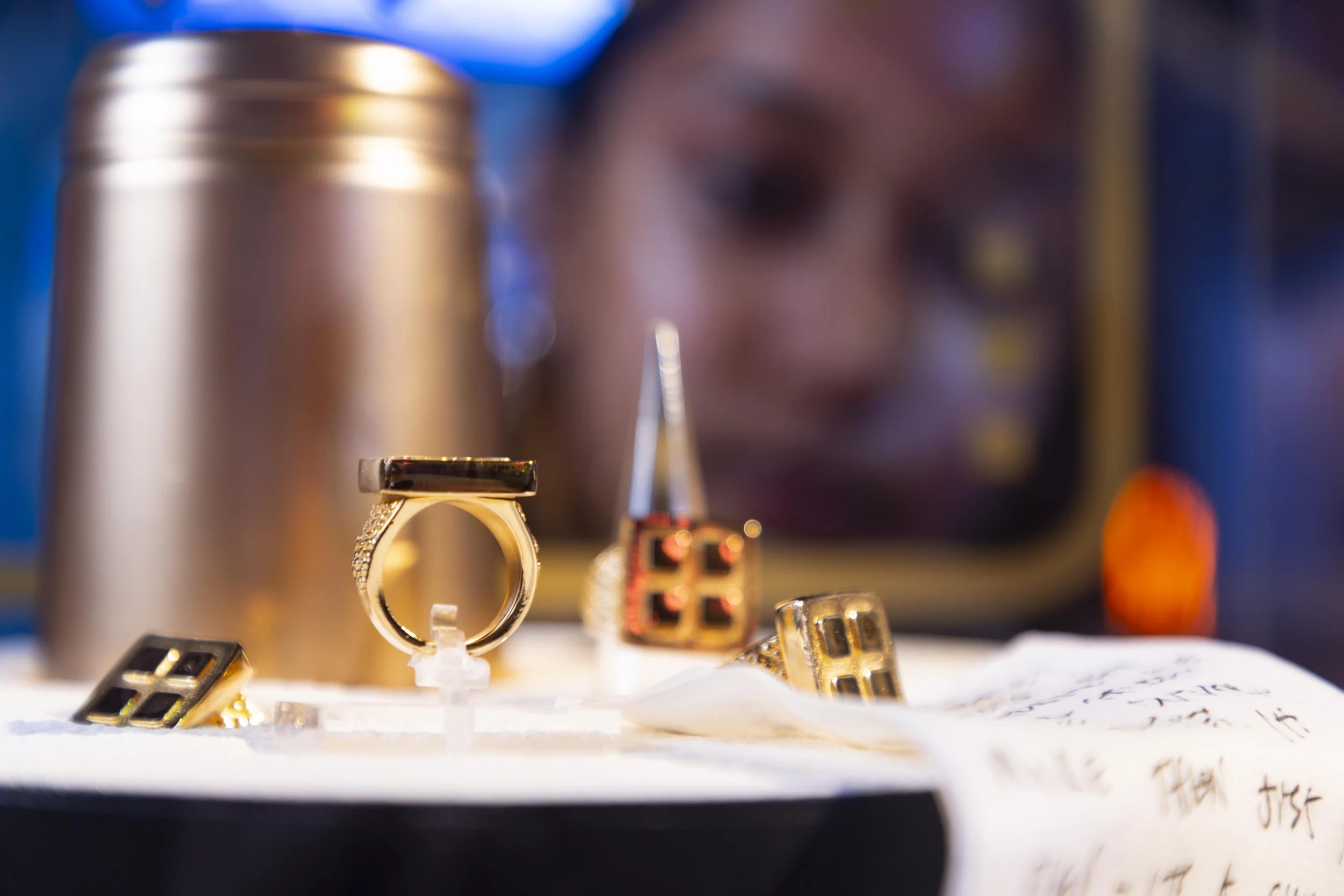 LAUNCH the new greggs jewelery collaboration with artist dion kitson: baked in gold as part of london fashion week.